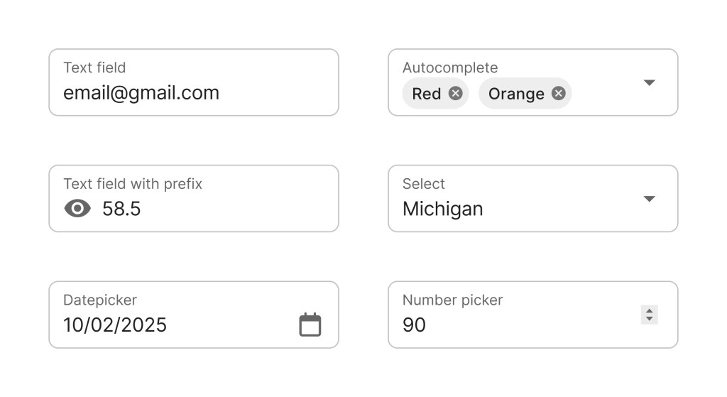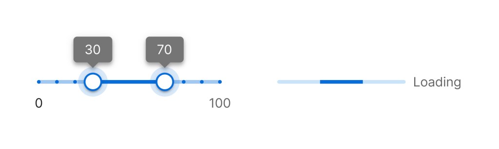 The slider and progress components leverage alike colors from the primary color family and the same fonts. When applying a new theme with a different primary color, these components would be recolored to align with that theme’s primary color.